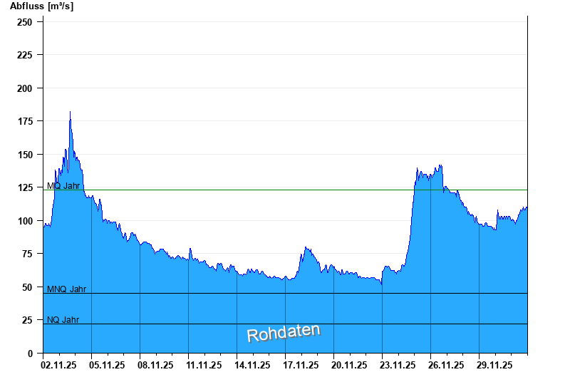 - Mittlerer Niedrigwasserabfluss MNQ 45,1 m³/s
