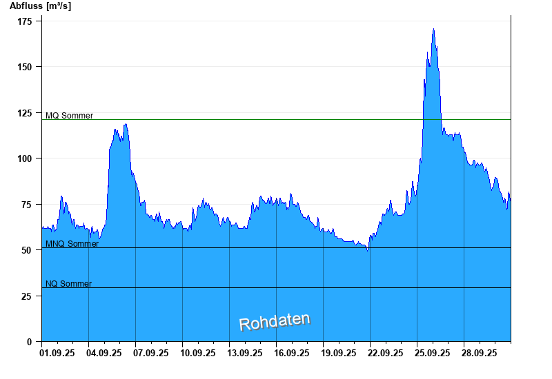 - Mittlerer Niedrigwasserabfluss MNQ 51,1 m³/s
