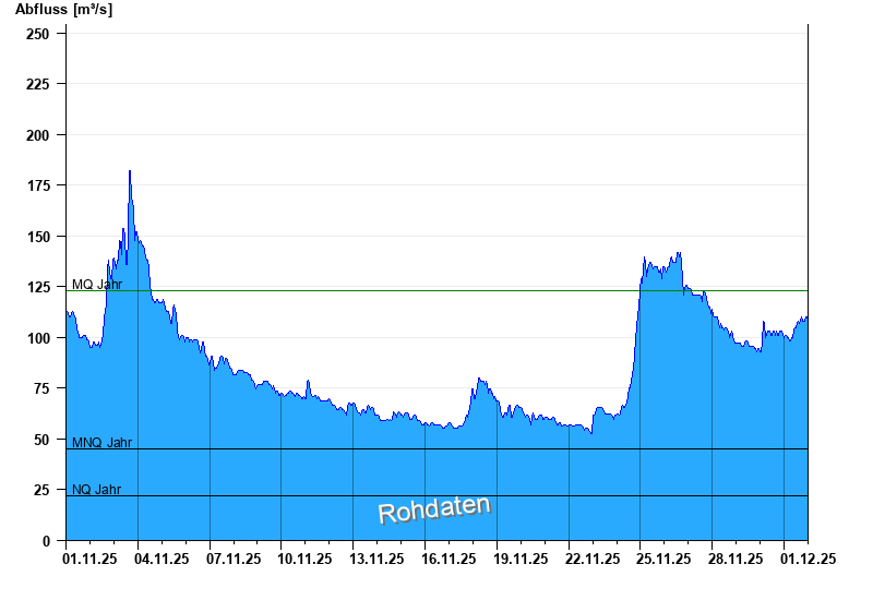 - Mittlerer Niedrigwasserabfluss MNQ 45,1 m³/s