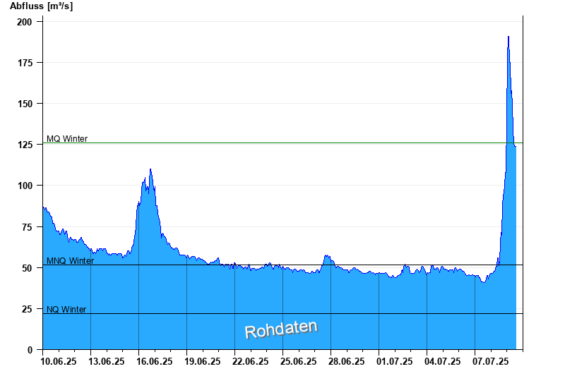 Pegel durch außerordentlichen Kraftwerksbetrieb beeinflusst.