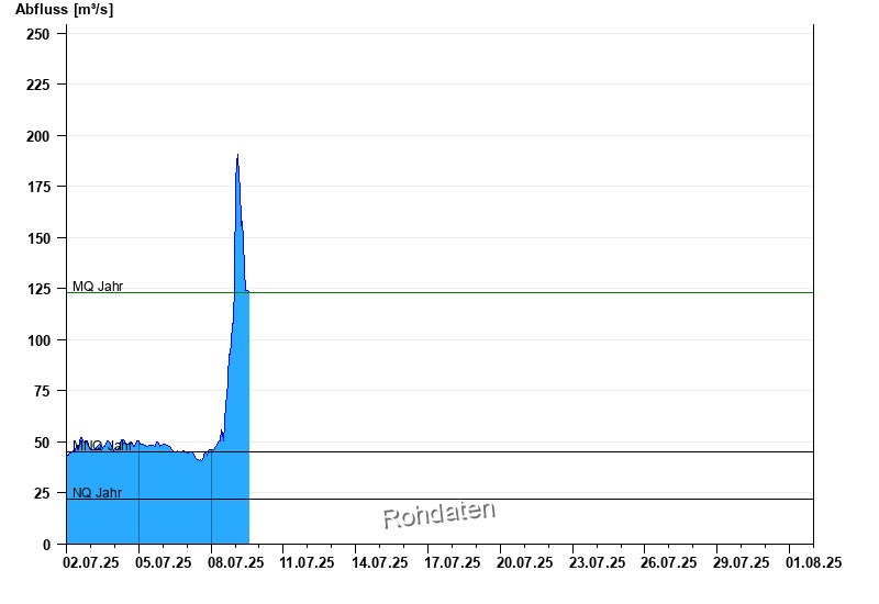 - Mittlerer Niedrigwasserabfluss MNQ 45,1 m³/s