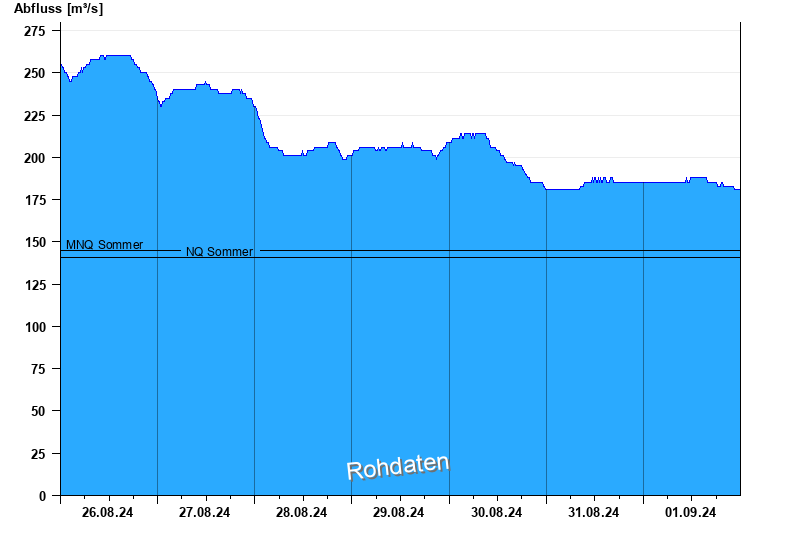 - Mittlerer Niedrigwasserabfluss MNQ 145 m³/s