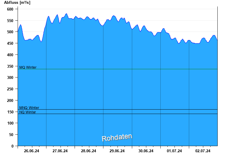 - Mittlerer Niedrigwasserabfluss MNQ 160 m³/s