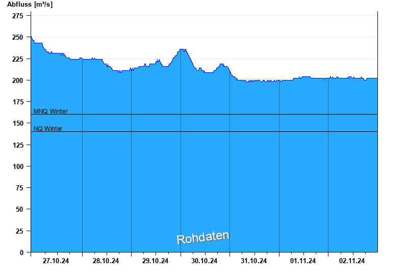 - Mittlerer Niedrigwasserabfluss MNQ 160 m³/s