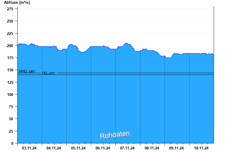 - Mittlerer Niedrigwasserabfluss MNQ 144 m³/s
