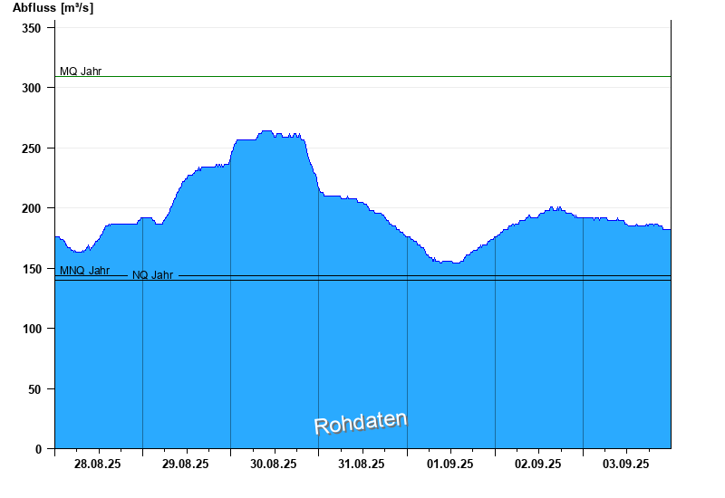 - Mittlerer Niedrigwasserabfluss MNQ 144 m³/s