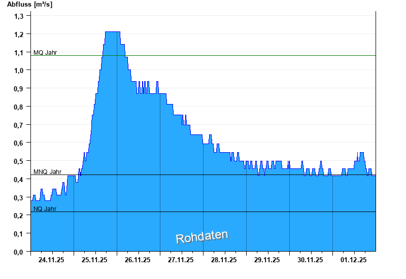 - Mittlerer Niedrigwasserabfluss MNQ 0,421 m³/s