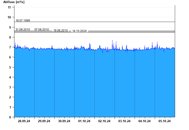 - 14.10.2024 Abfluss: 8,5 m³/s
