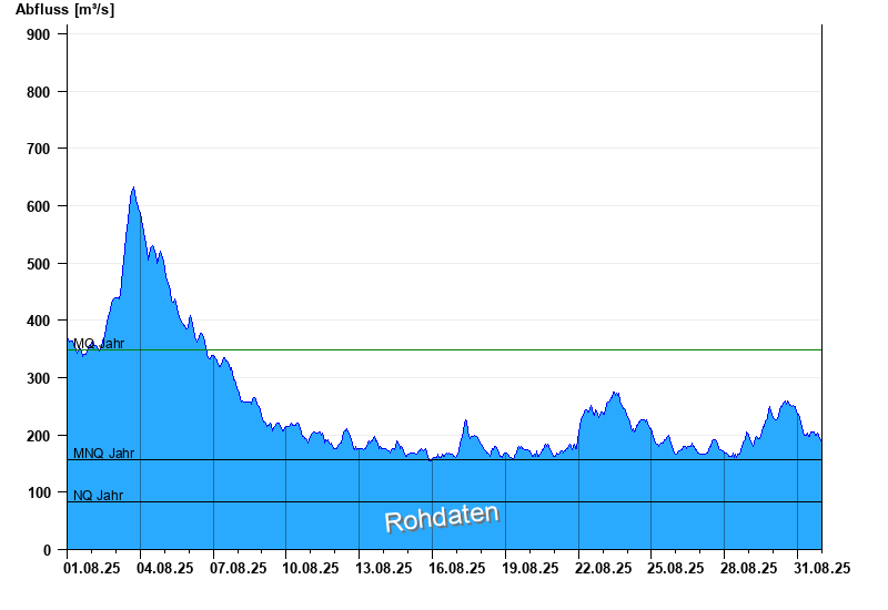 - Mittlerer Niedrigwasserabfluss MNQ 156 m³/s