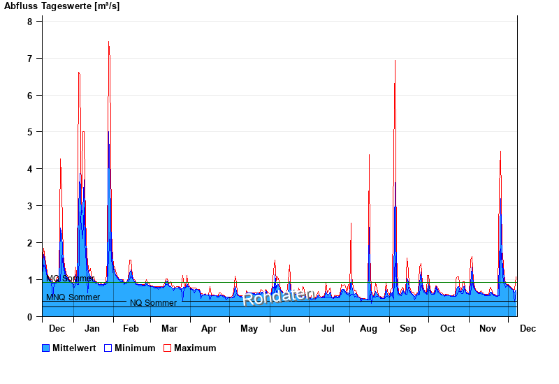 - Mittlerer Niedrigwasserabfluss MNQ 0,42 m³/s