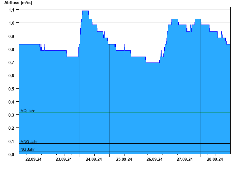 - Mittlerer Niedrigwasserabfluss MNQ 0,08 m³/s