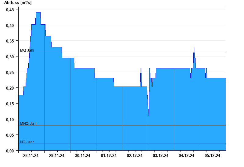 - Mittlerer Niedrigwasserabfluss MNQ 0,08 m³/s
