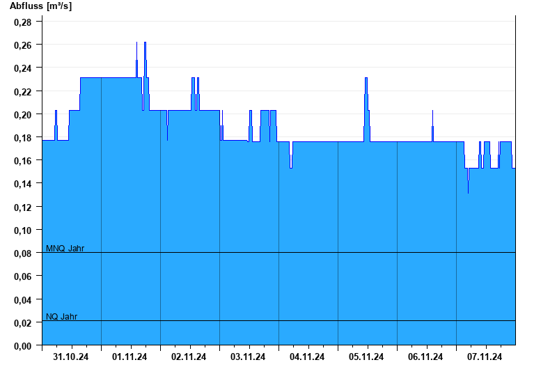 - Mittlerer Niedrigwasserabfluss MNQ 0,08 m³/s