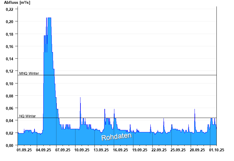 - Mittlerer Niedrigwasserabfluss MNQ 0,113 m³/s