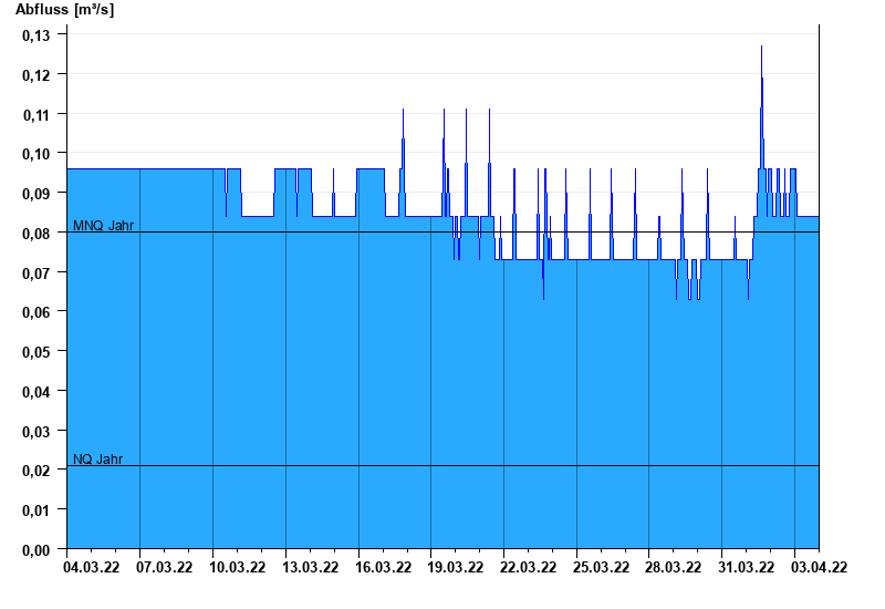 - Mittlerer Niedrigwasserabfluss MNQ 0,08 m³/s