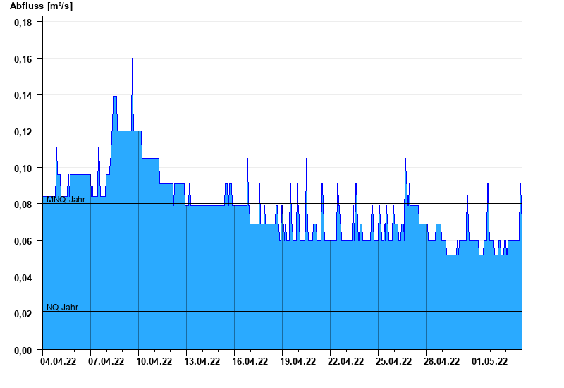 - Mittlerer Niedrigwasserabfluss MNQ 0,08 m³/s