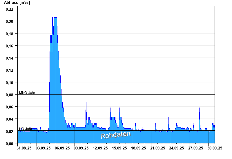 - Mittlerer Niedrigwasserabfluss MNQ 0,08 m³/s