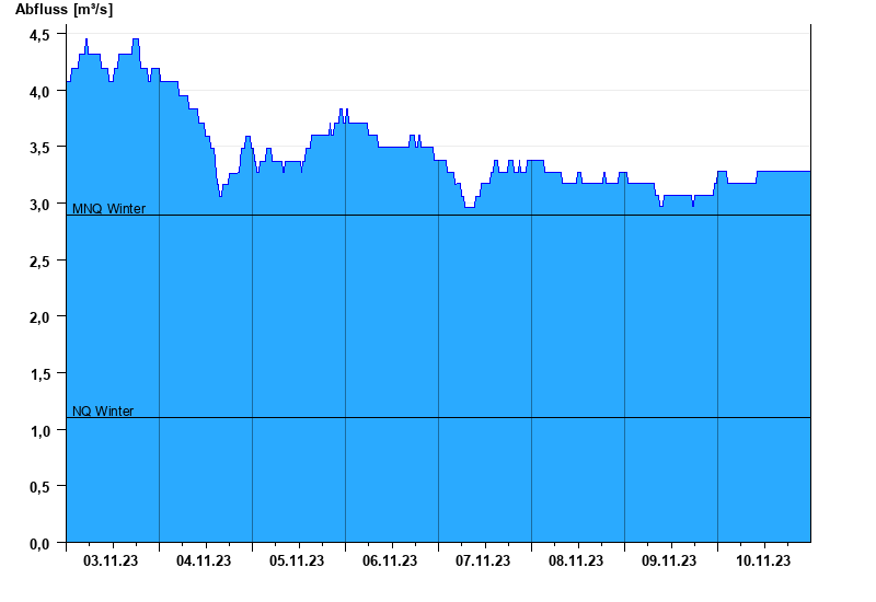 - Mittlerer Niedrigwasserabfluss MNQ 2,89 m³/s