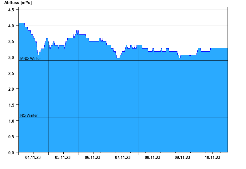 - Mittlerer Niedrigwasserabfluss MNQ 2,89 m³/s