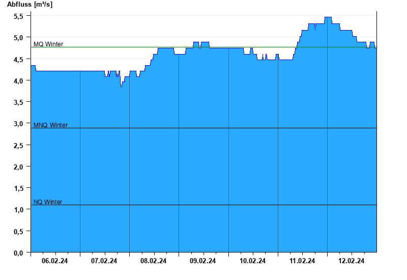 - Mittlerer Niedrigwasserabfluss MNQ 2,89 m³/s