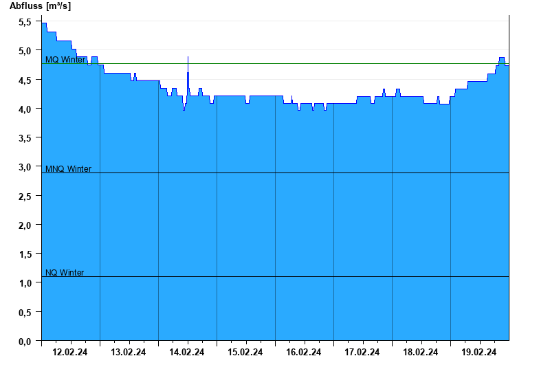 - Mittlerer Niedrigwasserabfluss MNQ 2,89 m³/s