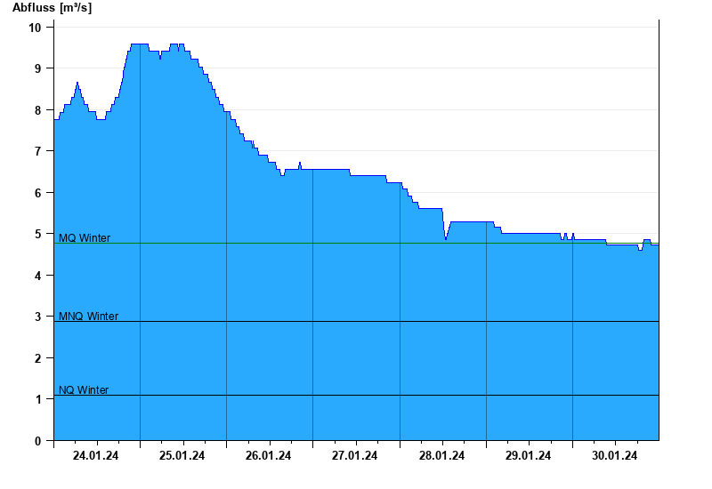 - Mittlerer Niedrigwasserabfluss MNQ 2,89 m³/s