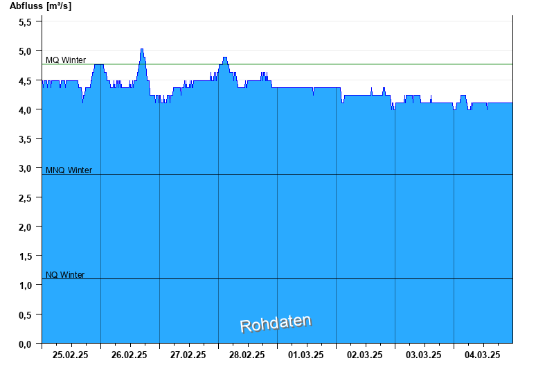 - Mittlerer Niedrigwasserabfluss MNQ 2,89 m³/s
