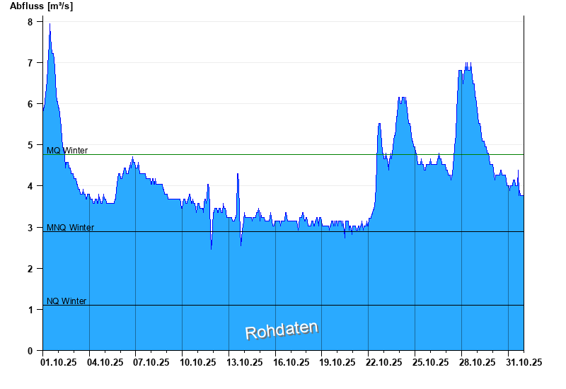 - Mittlerer Niedrigwasserabfluss MNQ 2,89 m³/s
