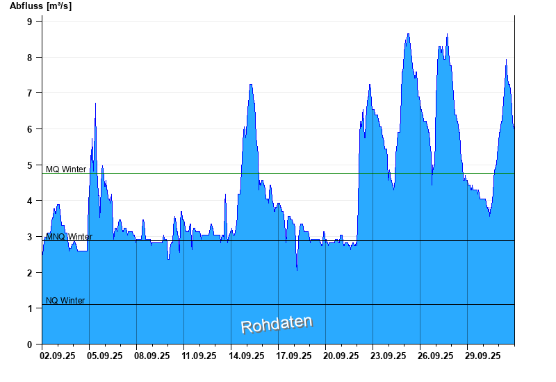 - Mittlerer Niedrigwasserabfluss MNQ 2,89 m³/s