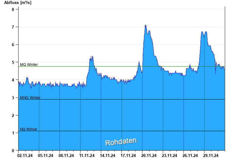 - Mittlerer Niedrigwasserabfluss MNQ 2,89 m³/s
