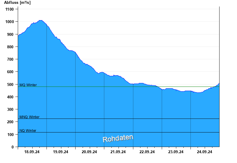 - Mittlerer Niedrigwasserabfluss MNQ 224 m³/s