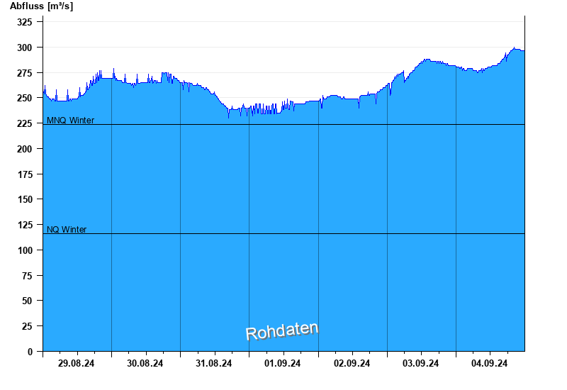 - Mittlerer Niedrigwasserabfluss MNQ 224 m³/s
