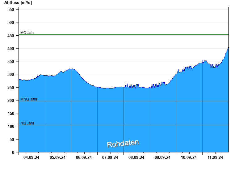 - Mittlerer Niedrigwasserabfluss MNQ 198 m³/s