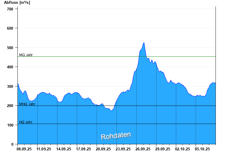 - Mittlerer Niedrigwasserabfluss MNQ 198 m³/s