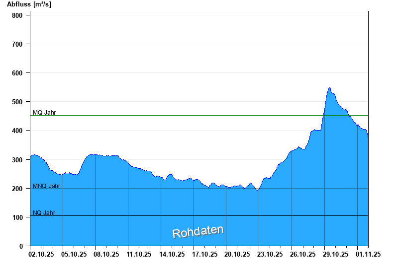 - Mittlerer Niedrigwasserabfluss MNQ 198 m³/s