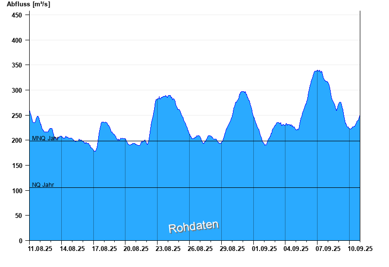 - Mittlerer Niedrigwasserabfluss MNQ 198 m³/s