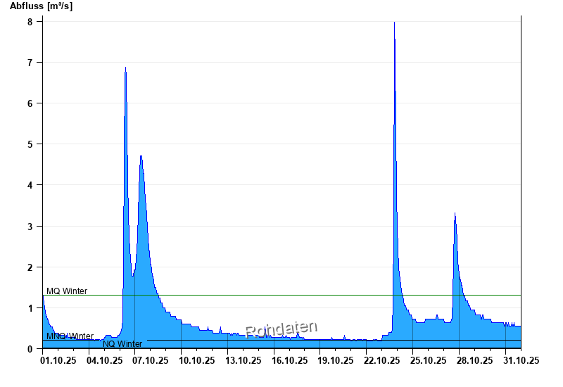 - Mittlerer Niedrigwasserabfluss MNQ 0,205 m³/s