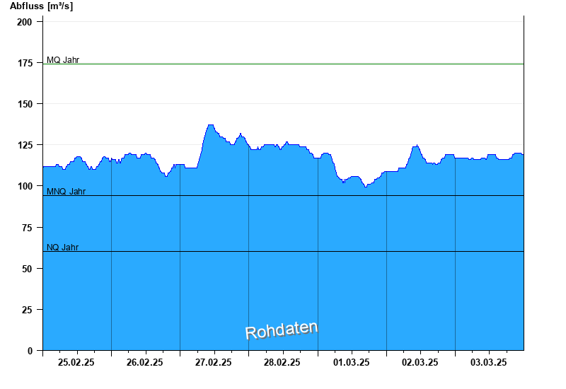 - Mittlerer Niedrigwasserabfluss MNQ 94,3 m³/s