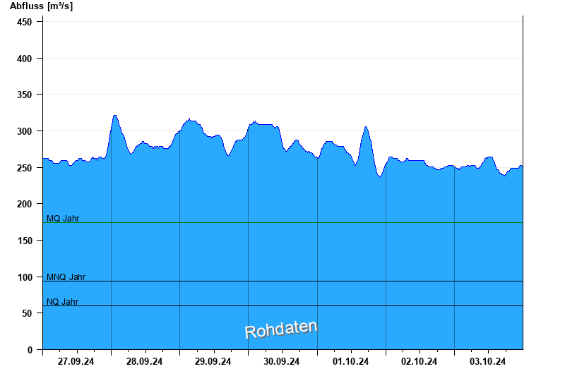 - Mittlerer Niedrigwasserabfluss MNQ 94,3 m³/s