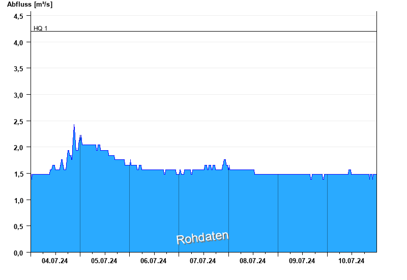 Abfluss durch starke Verkrautung behindert; Abflusswerte unsicher
