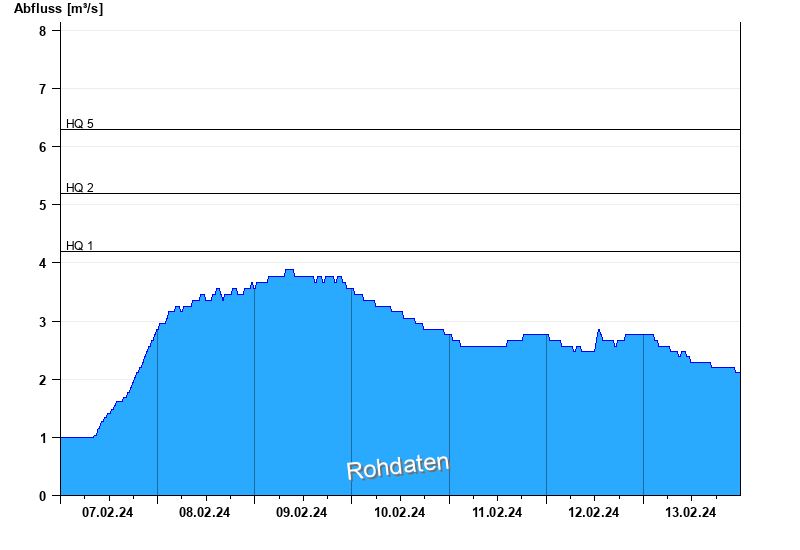 Abfluss durch starke Verkrautung behindert; Abflusswerte unsicher