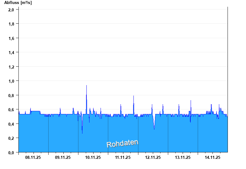 Abfluss durch starke Verkrautung behindert; Abflusswerte unsicher