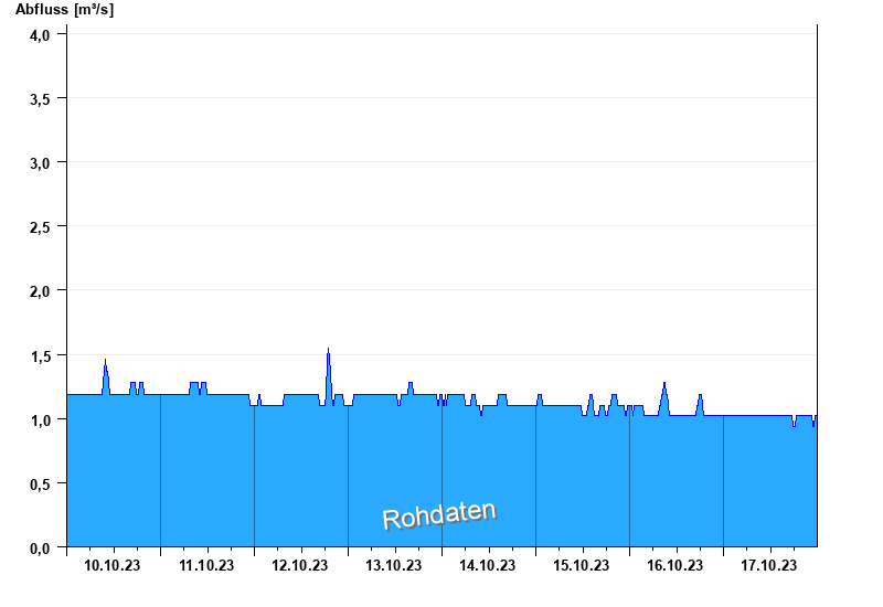 Abfluss durch starke Verkrautung behindert; Abflusswerte unsicher