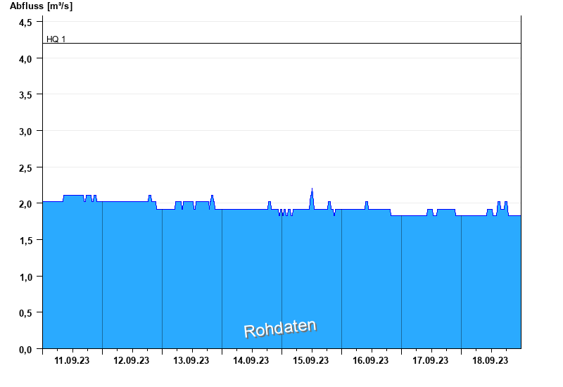 Abfluss durch starke Verkrautung behindert; Abflusswerte unsicher