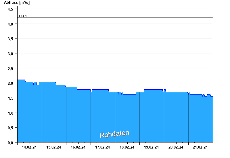 Abfluss durch starke Verkrautung behindert; Abflusswerte unsicher