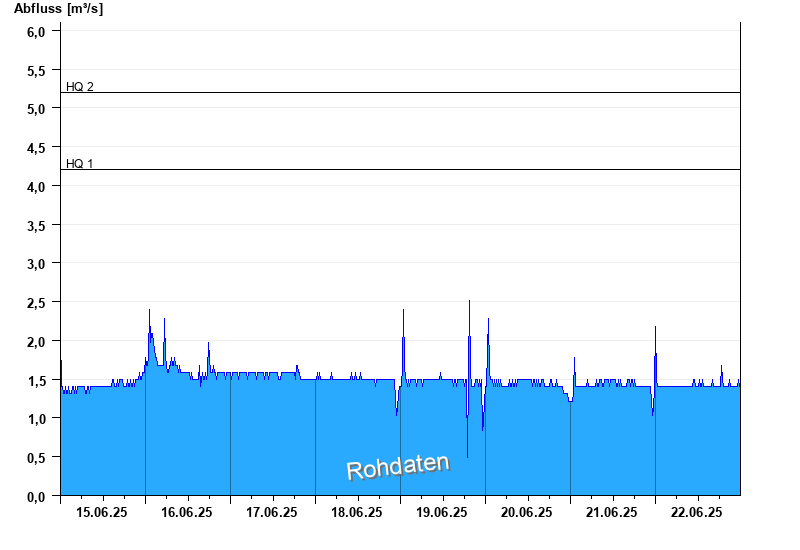 Abfluss durch starke Verkrautung behindert; Abflusswerte unsicher