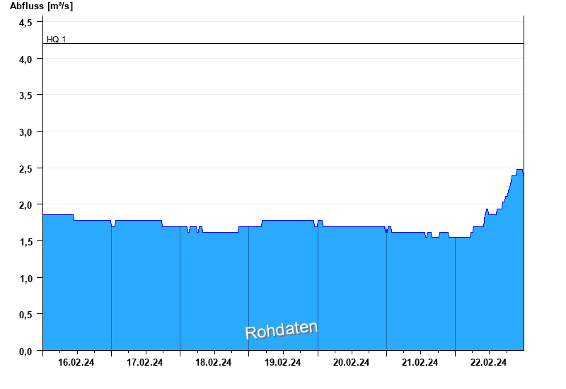 Abfluss durch starke Verkrautung behindert; Abflusswerte unsicher