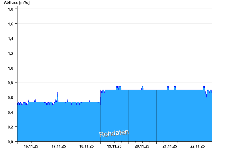 Abfluss durch starke Verkrautung behindert; Abflusswerte unsicher