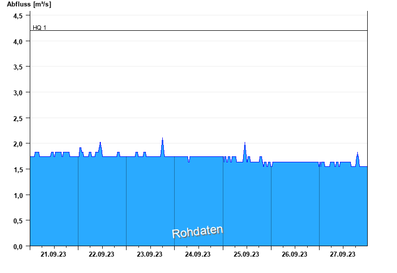 Abfluss durch starke Verkrautung behindert; Abflusswerte unsicher