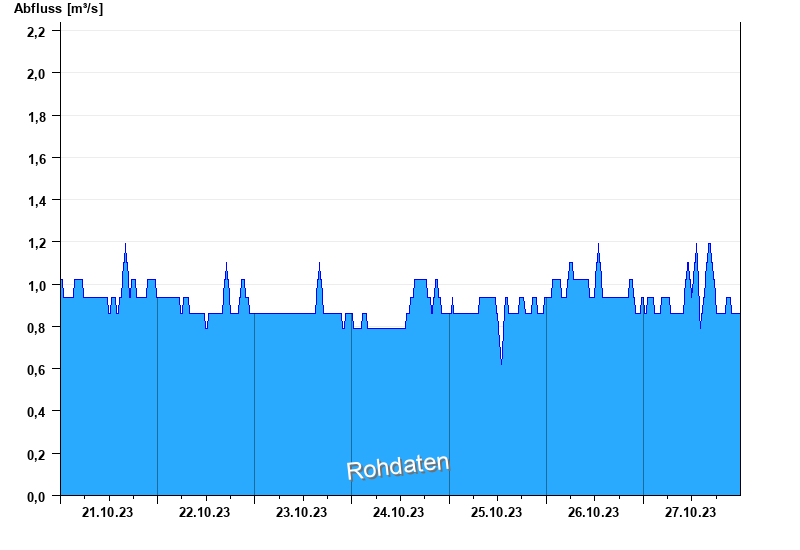 Abfluss durch starke Verkrautung behindert; Abflusswerte unsicher